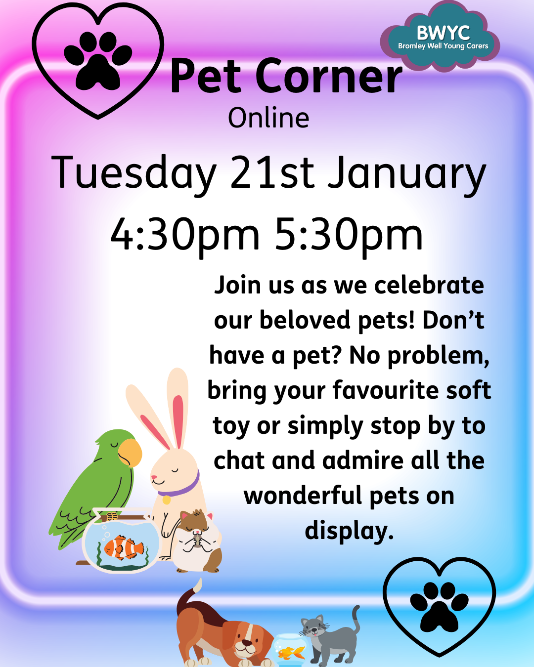 To book your place please complete the booking form via the Young Carers App. Any questions email: youngcarers@bromleywell.org.uk |