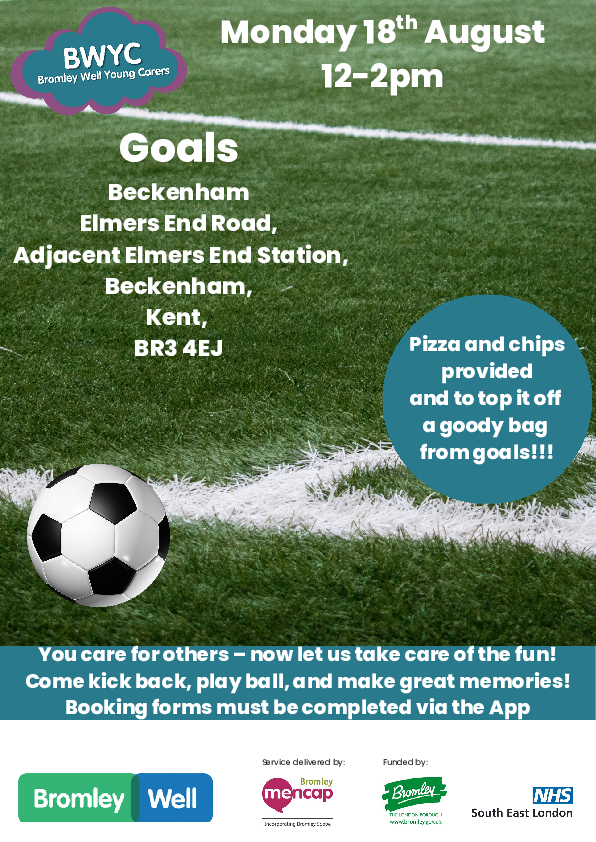 Come and join the BWYC team for a fantastic day out at Goals Beckenham, where you can kick back, play football, enjoy games, and make great memories with friends. Pizza and chips will be provided – and to top it all off, you’ll go home with a special goody bag from Goals!