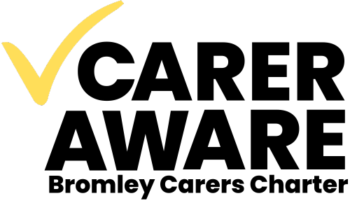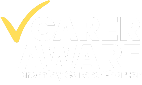 Carer Aware tick logo (white with yellow tick)
